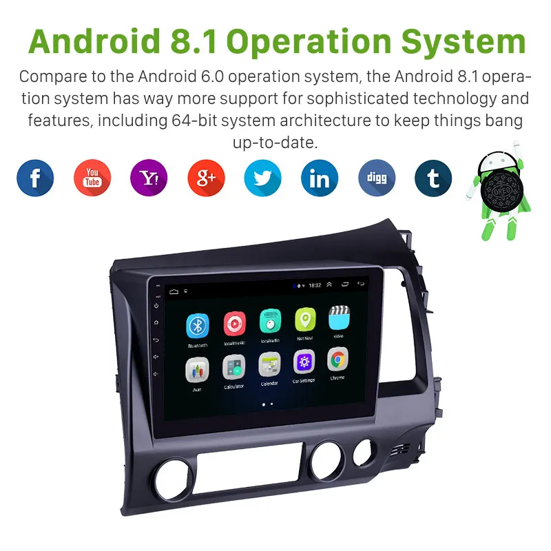 Seicane 2GBRAM Car Radio Multimedia Video Player Navigation GPS For HONDA CIVIC 2006 2007 2008 2009