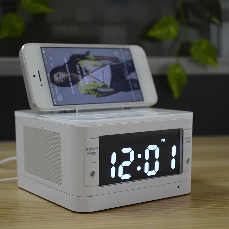 2017 New alarm clock mobile phone bluetooth stereo USB plug LED clock in U disk radio speaker batte