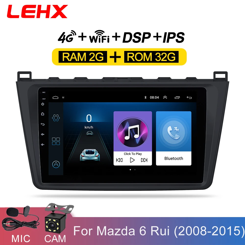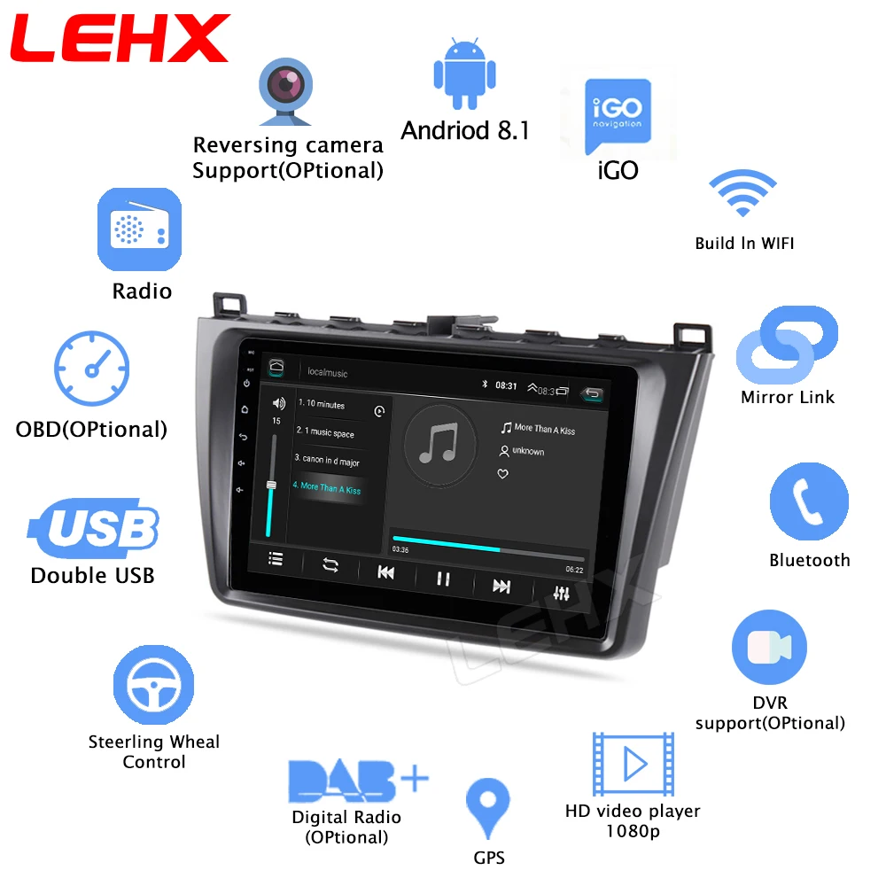 LEHX Car Android 8.1 2DIN Car Head Unit Radio Multimedia Player for Mazda 6 Rui wing 2008 2009 2010