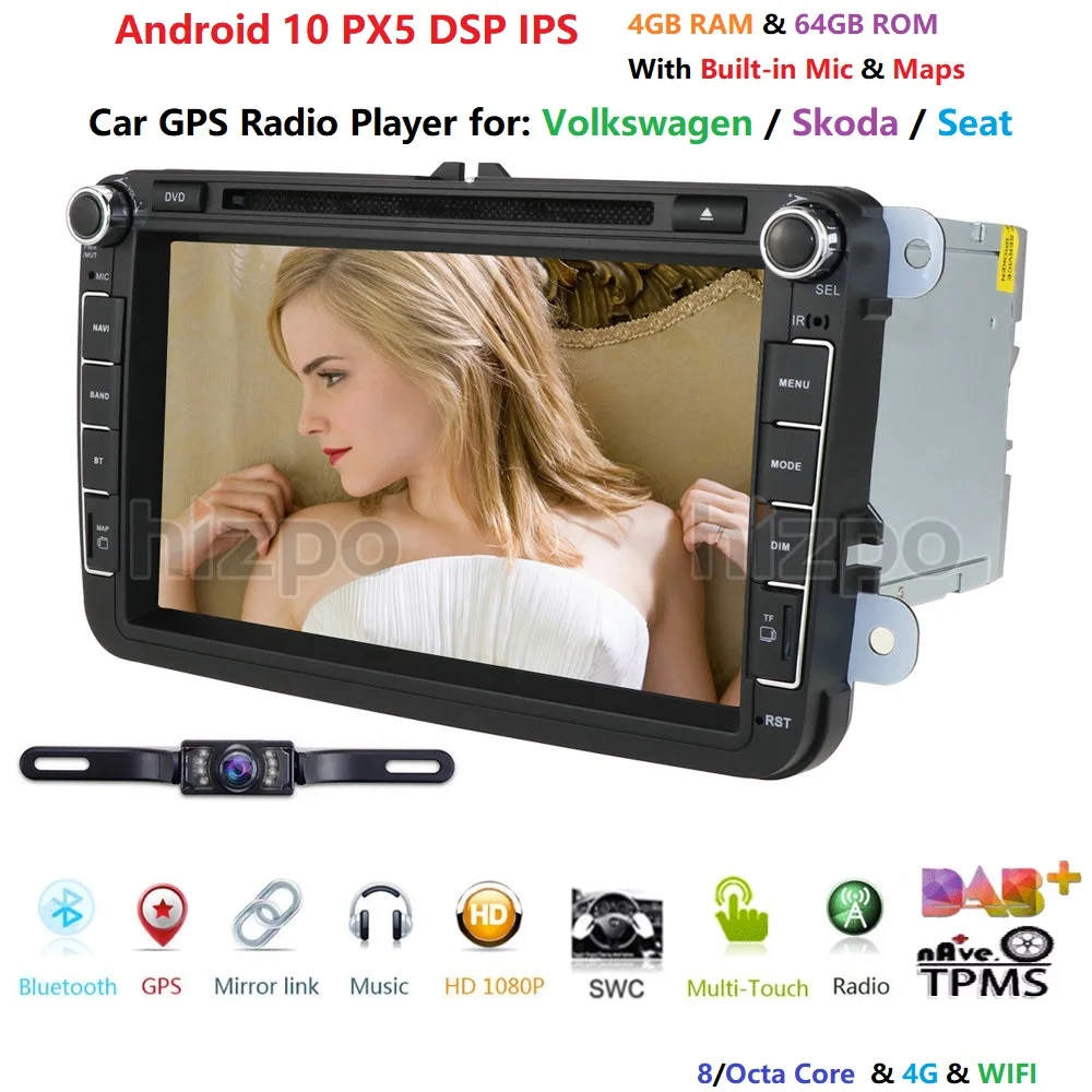 2 din Android 9.0 Octa Core 4GB RAM 64GROM Car DVD for VW Passat CC Polo GOLF 5 6 Touran EOS T5 Sha