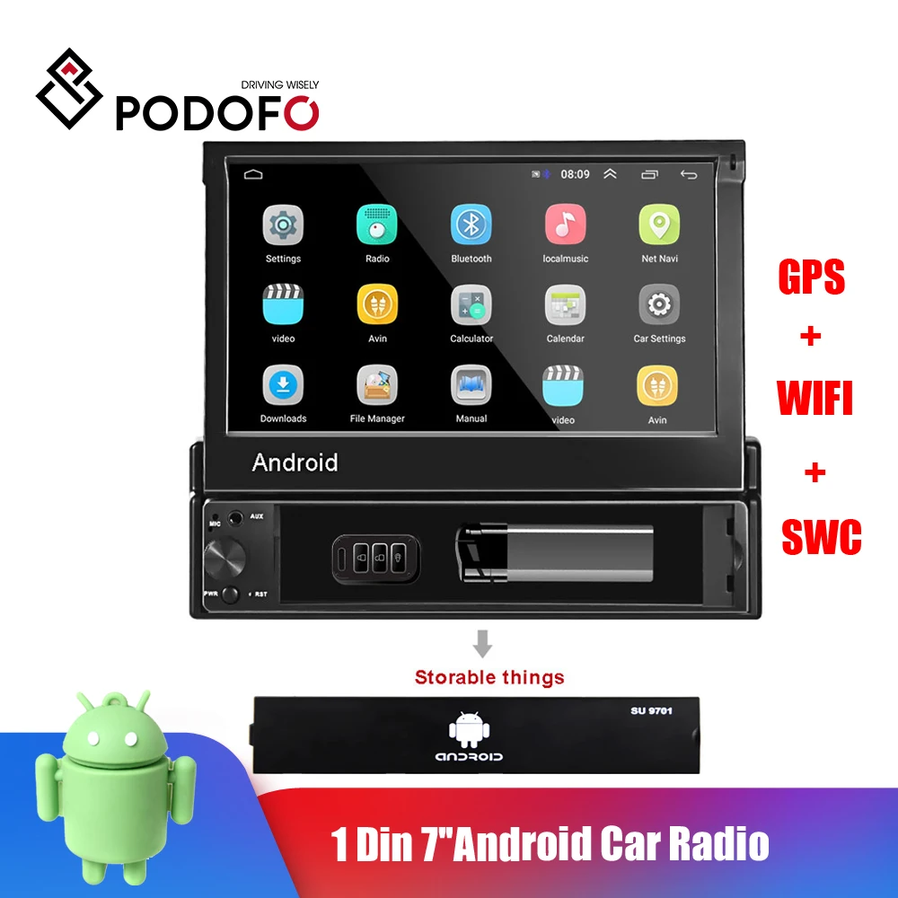 Podofo 1 Din Android Car Radio Car Multimedia Player GPS Navigation Wifi Auto MP5 Bluetooth USB FM